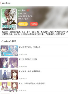 简介:《cos time》漫画简述:肖慕然本是一个十分消极的人,成绩差、生活一团糟,就连他自己,也对未来没有抱有多大的期望。他只喜欢二次元的世界,对三次元这充满了恶意的世界失望透顶,直到有一次,他在厕所遇到了一个cos持刀杀人狂的怪人,这才打开了新世界的大门,他开始进入了学校的cos社团,一步步向着自己喜欢的生活迈进!