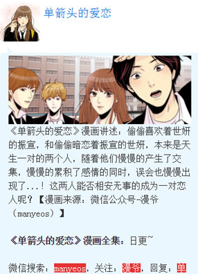 A-A+ 单箭头的爱恋 2025-06-17 04:31 韩漫大全 开始阅读 微信阅读 简介:漫画《单箭头的爱恋》简介:偷偷喜欢着世妍的振宣,和偷偷暗恋着振宣的世妍,本来是天生一对的两个人,随着他们慢慢的产生了交集,慢慢的累积了感情的同时,误会也慢慢出现了...!这两人能否相安无事的成为一对恋人呢?