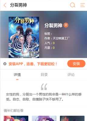 简介:漫画《分裂男神》简述:你有想过吗,自己的身体里面居然成为两个人的住所?我本来只是一个传统的女性,从来没有想过自己的身体居然分裂了出来一个男性的我。于是那个男性的他变成了一个我的男身!那么我还能够继续的用这个身体去撩妹吗?能够继续的成为他的依靠吗?你知道吗?